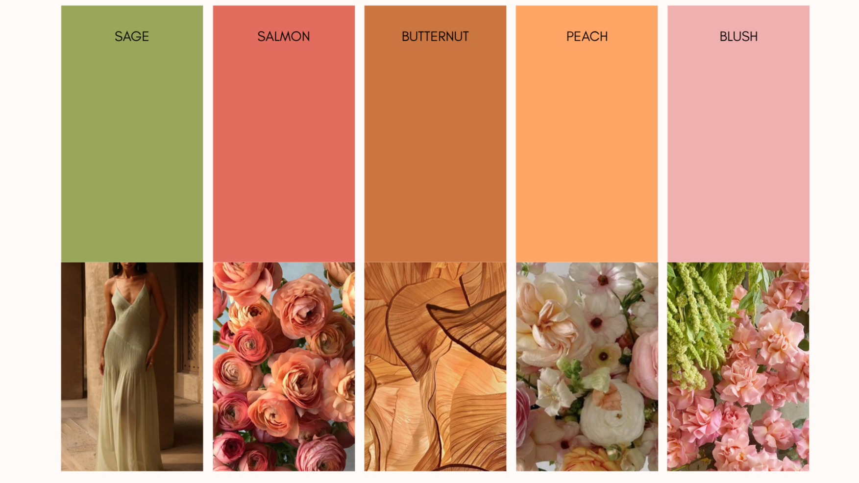 Deep peaches, soft apricots and burnt blush. A palette perfect for Autumn and Spring weddings.